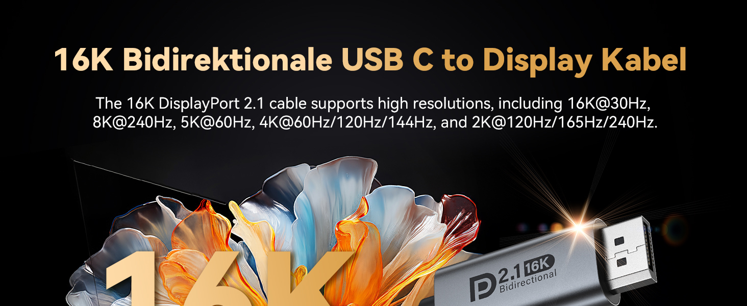 Bidirectional USB C to DisplayPort 2.1 Cable 16K 8K@120Hz