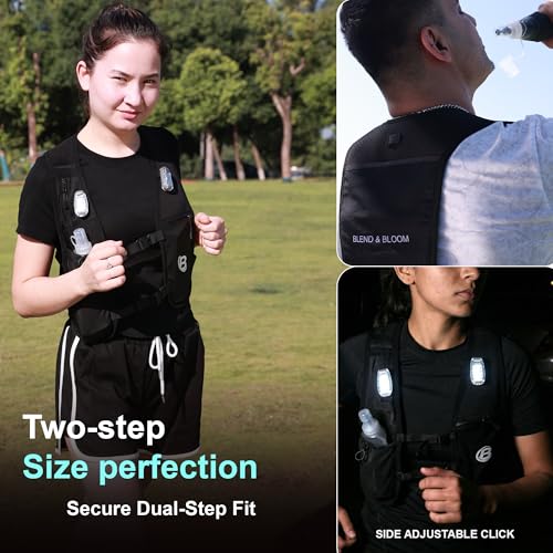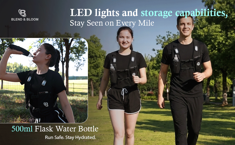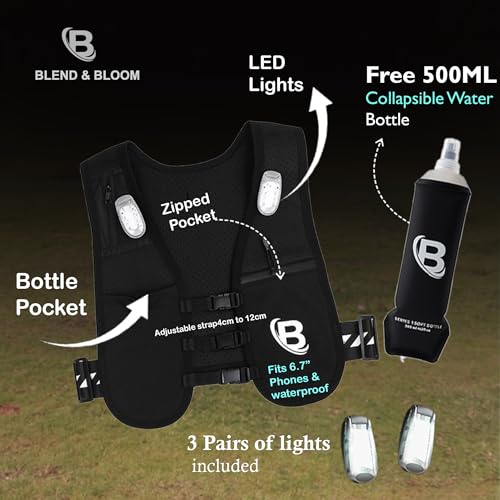 Blend & Bloom Running Vest for Women Men, Hydration Vest with Water Bottles, Running Backpack with Phone Holder &Storage, Reflective LED Lightweight Ves