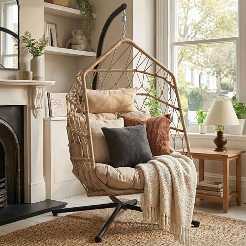 - Straightforward Assembly: Delivered flat-packed with simple instructions, you can quickly assemble this swinging egg chair with a little assistance.