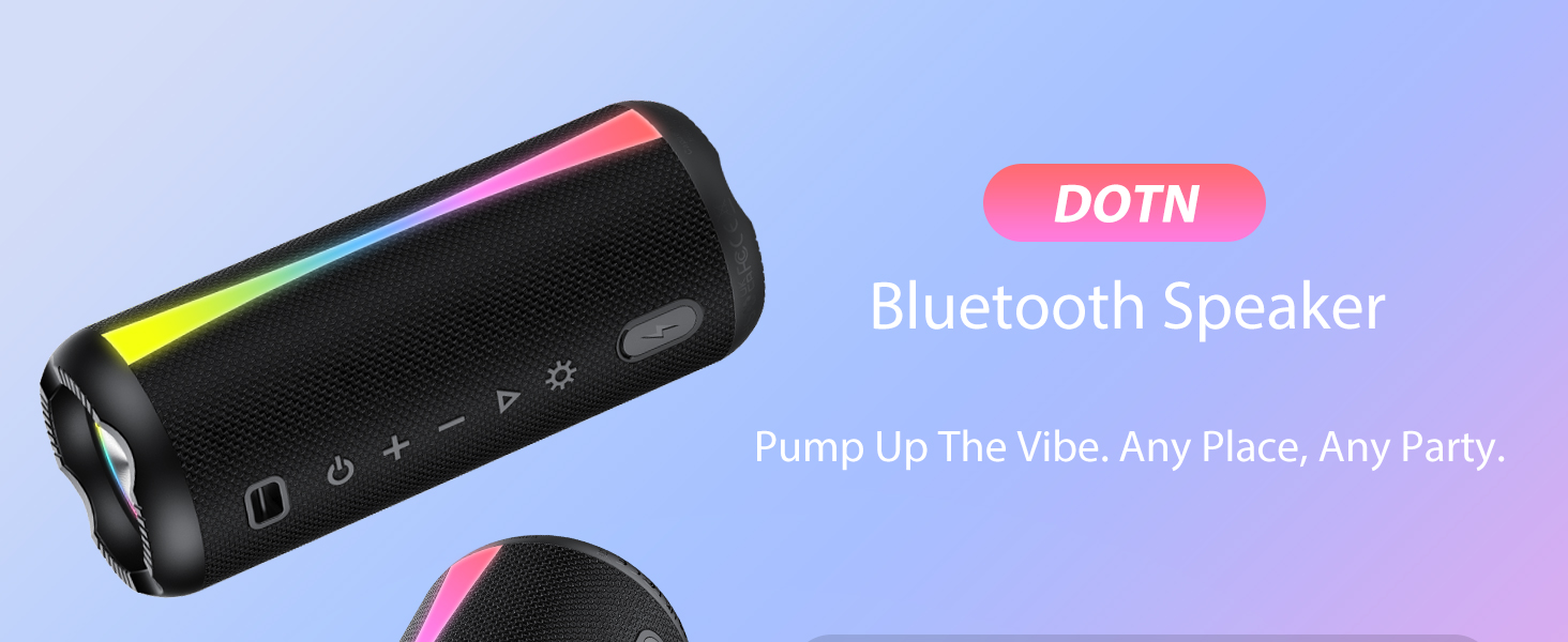 Dynamic RGB Mood Lighting: Elevate your atmosphere with this wireless speaker’s dynamic RGB lighting. With integrated controls at your fingertips, take your pick from a spectrum of preset themes—whether you're after a chill vibe with soft gradients, an energetic pulse, or a solid splash of colour. More than just illumination, the lights wrap the room in captivating depth, breathing new life into your space and syncing perfectly with your sound for a truly immersive experience.