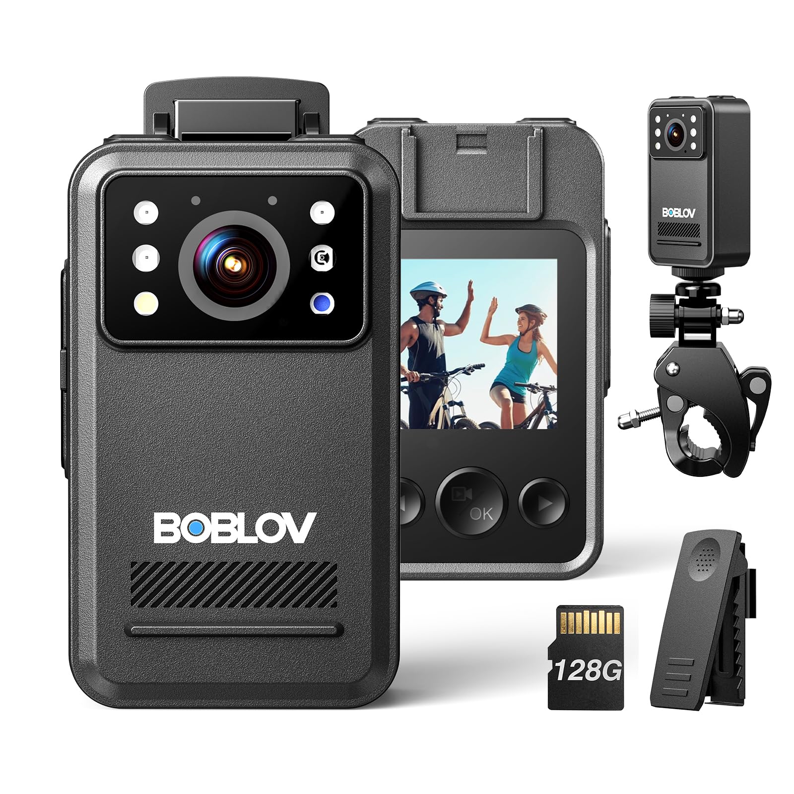 BOBLOV A28 Small Body Camera, Mini Video Camera Camcorder with 2K, 9 Hours Battery Life, with Night Vision, and Bike Mount for On-The-Go Recording, Law Enforcement and Personal Usage(128GB)