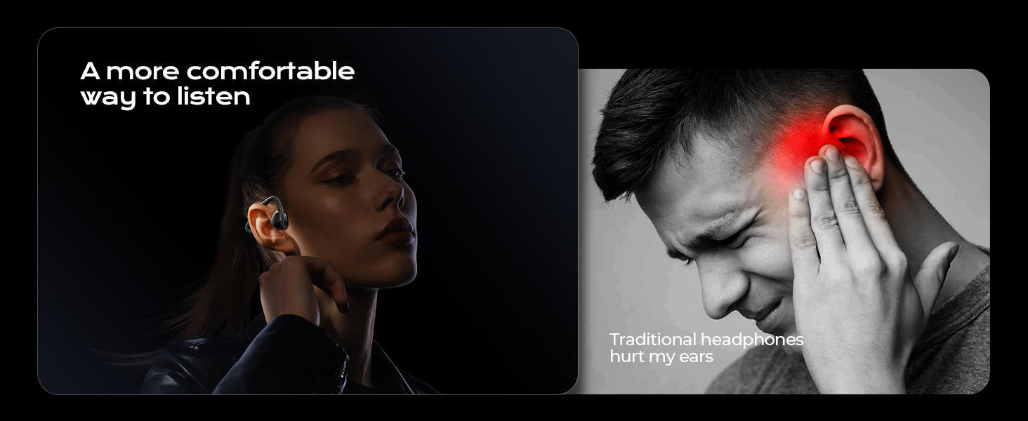 All-Day Comfort with Open-Ear Design: Made of skin-friendly silicone, these bone conduction headphones have an innovative open structure that sits outside the ear canal for non-irritating wear. The secure fit enables hours of comfortable listening, while bone conduction tech sends clear sound via cheekbones to reduce ear tiredness