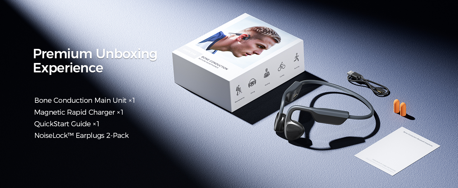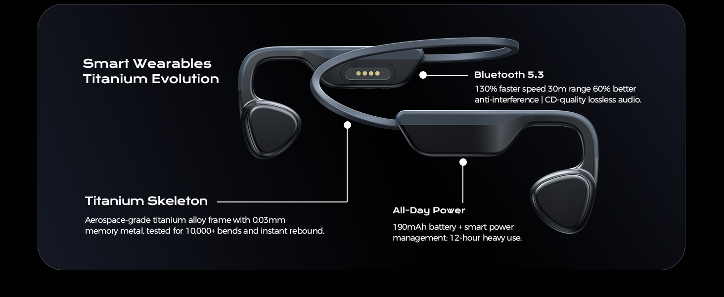 Ergonomic & Lightweight Build: Weighing only 29g, these bone conduction headsets pair a lightweight frame with titanium alloy memory wire. The bionic earhook design fits the ear’s shape, ensuring a stable hold even during intense workouts and evenly distributing pressure for long-lasting comfort
