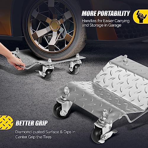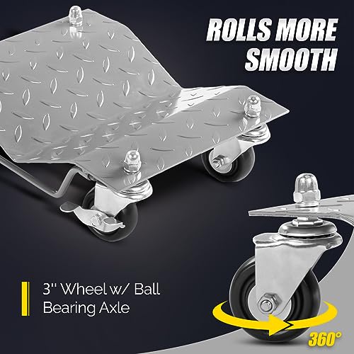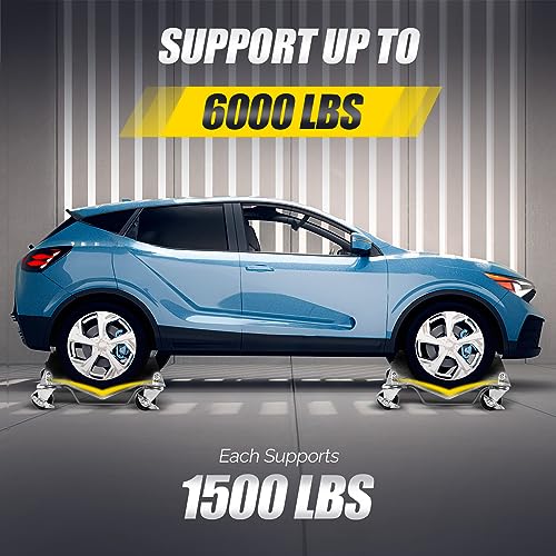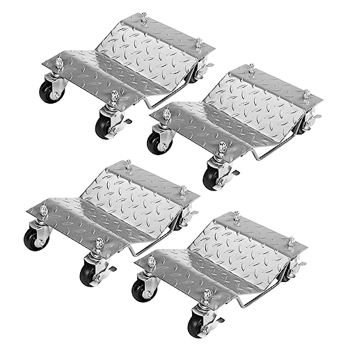 - [Heavy-Duty Construction]: Made from thickened steel plates, this 4 – wheel mover set has a total capacity of 2720 KG (680 KG per wheel). Easy to use and do an effective job of moving vehicles around a garage or storage space without too much effort.