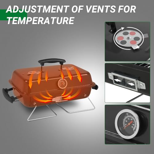 - [Precise Temperature Control]: This portable grill master the flames with dual adjustable dampers that give you complete airflow control. Easily adjust heat levels for slow smoking or high-temperature searing – your perfect cook is just a damper adjustment away
