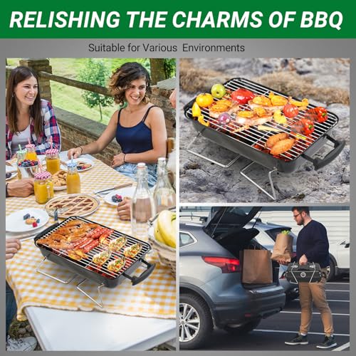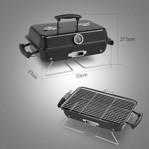 “- [Easy to Move]: This charcoal grill designed for ultimate portability, this grill features a sturdy handle and secure lid lock, making transportation a breeze. Toss it in your trunk for beach cookouts, park picnics, or camping trips – delicious BBQ is always within reach wherever adventure takes you