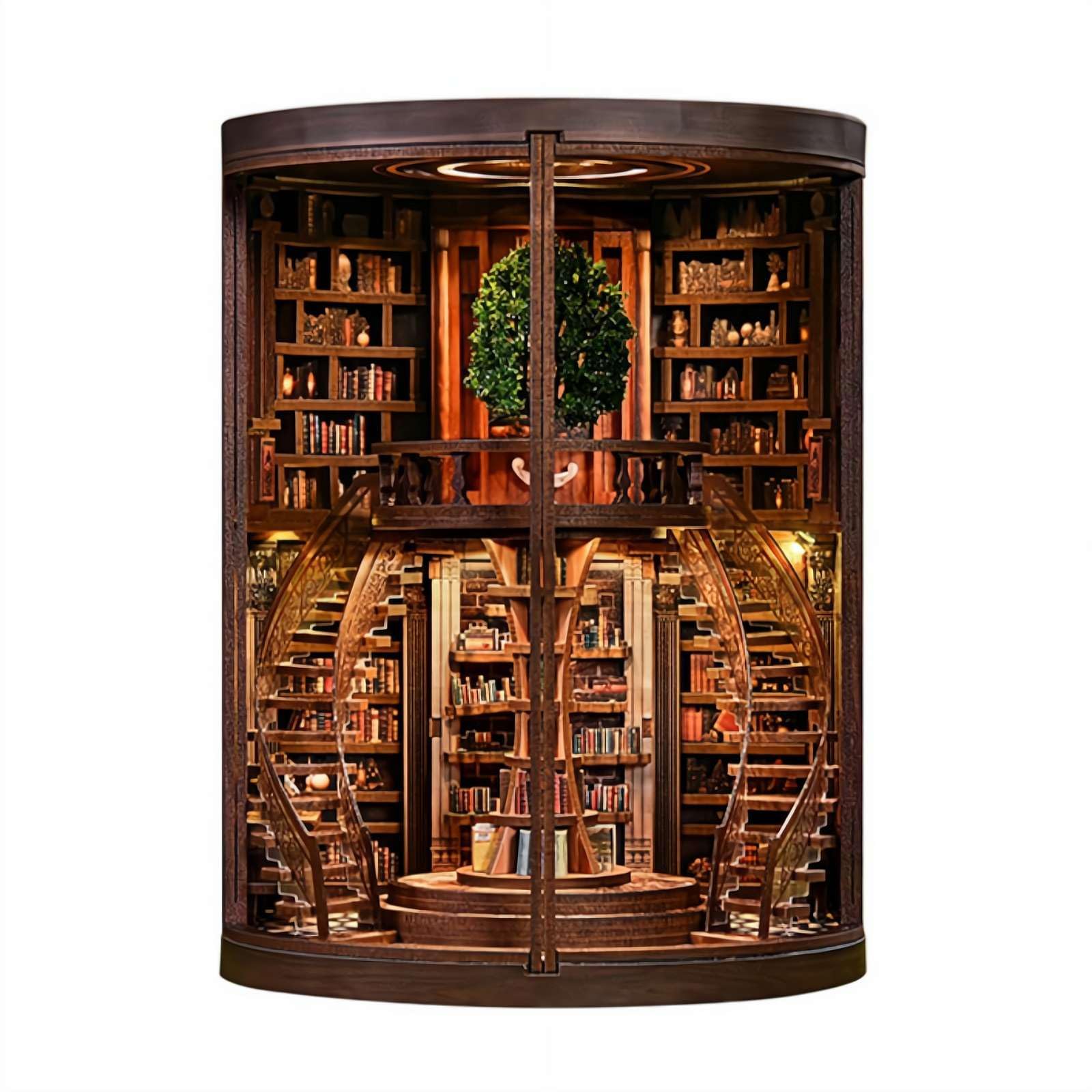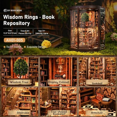- 【Enchanting Miniature Library Scene】Build the “Wisdom Ring Library,” a detailed book nook featuring dual spiral staircases, symmetrical book corridors, tiny books, and an shelf. It creates a warm, immersive world inside your bookshelf.