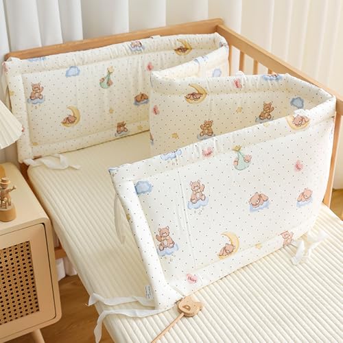 - 1. Premium Breathable Cotton Material for Skin-Friendly Safety :Crafted from high-density combed cotton gauze (or high-quality cotton fabric) with high-elasticity microfiber filling, our cot bumper is ultra-soft, skin-friendly, and non-toxic—perfect for babies' delicate skin. The breathable open-pore design prevents stuffiness, while the quilted edge construction keeps the filling in place and avoids shifting. It’s also wear-resistant and durable, resisting deformation even with long-term use, providing a safe and cozy environment for your little one.