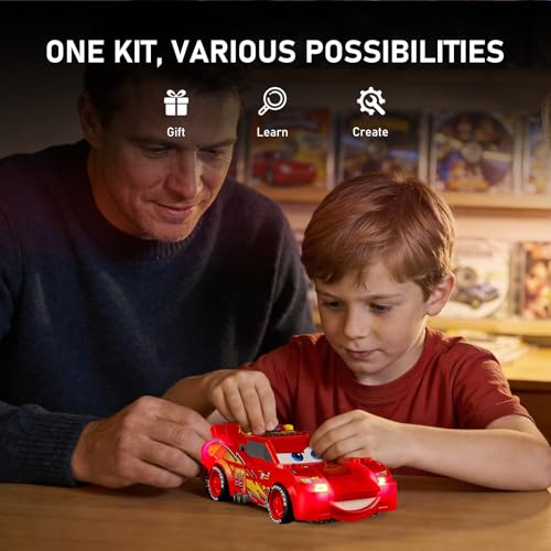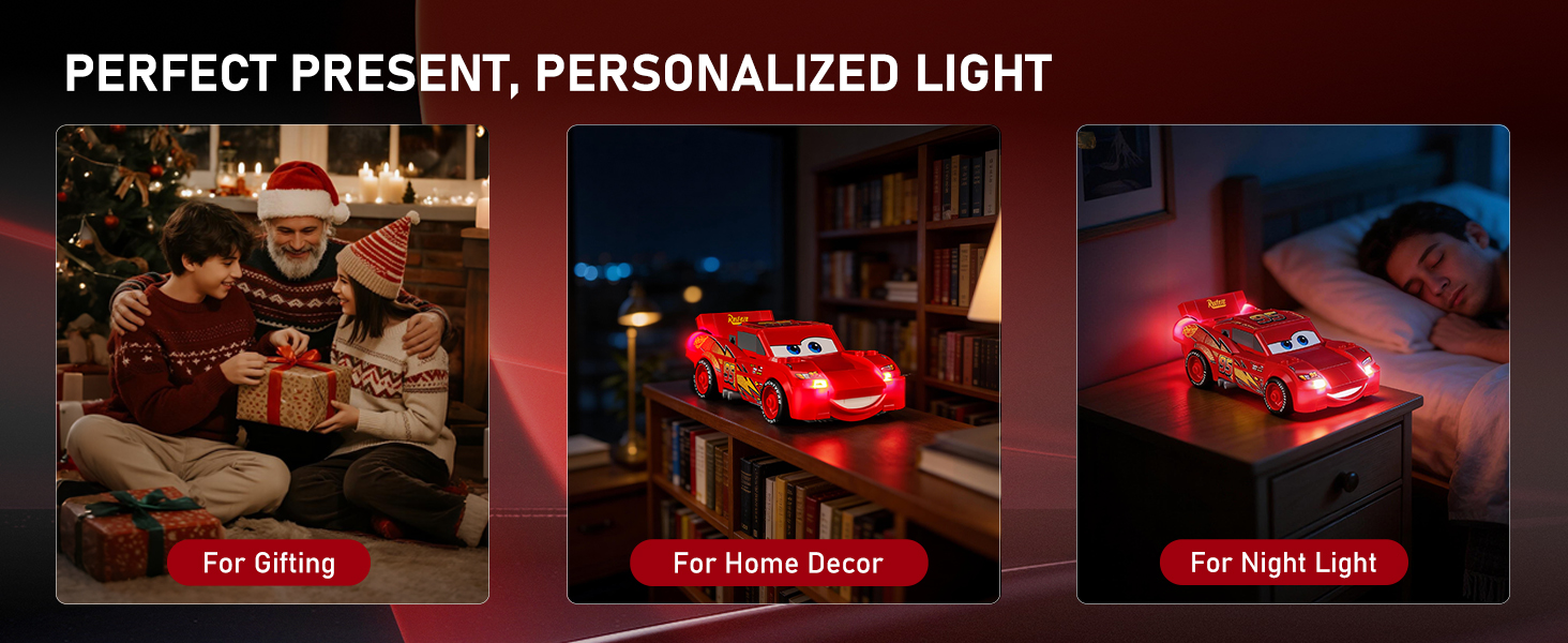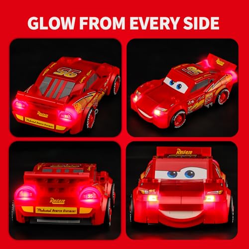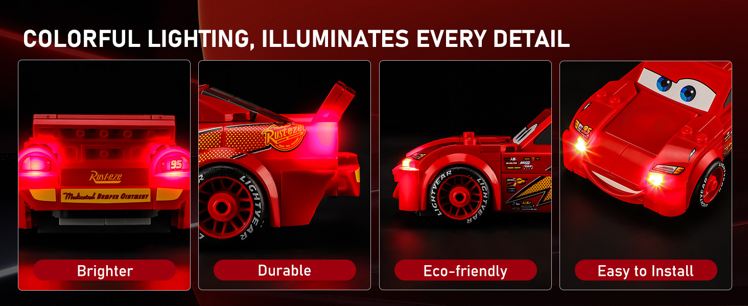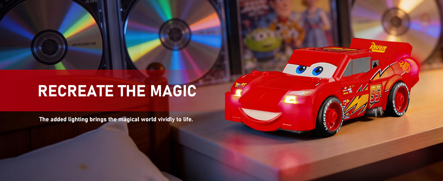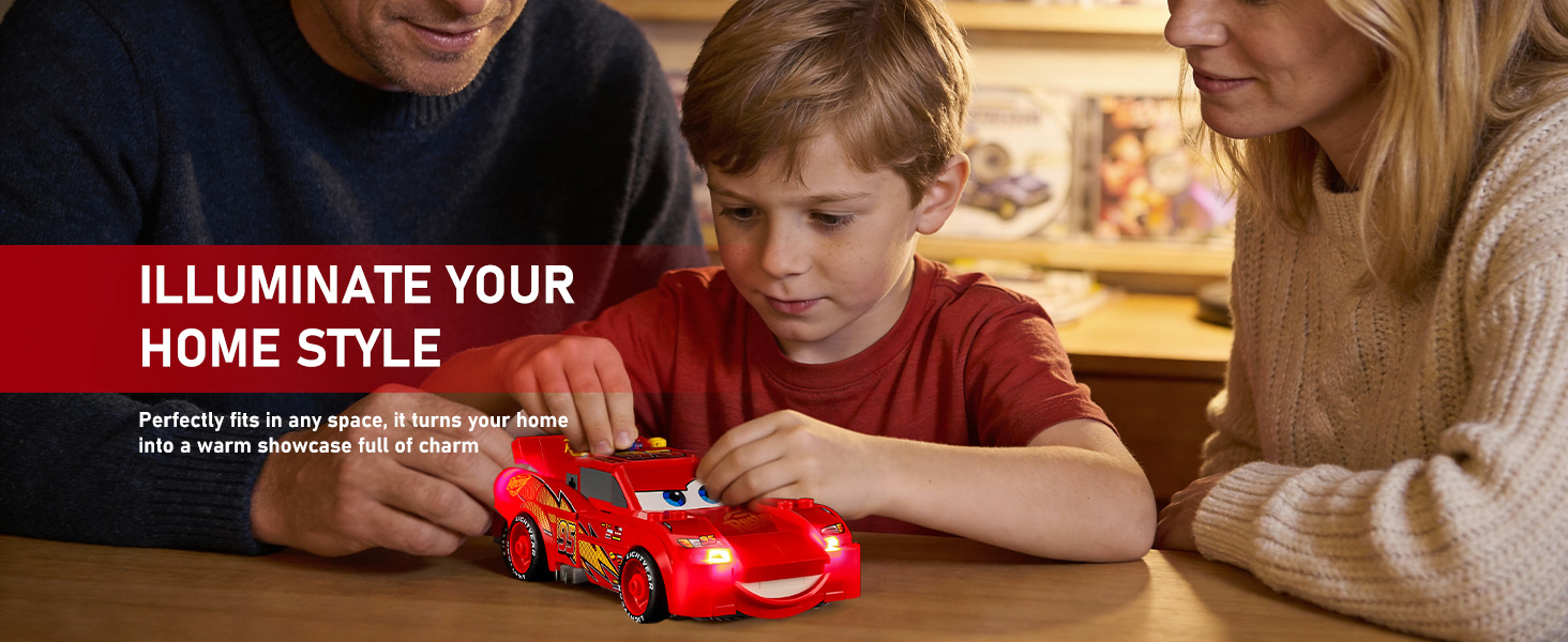 【Smarter Lighting, Cleaner Look】Say goodbye to harsh glare and messy wires! Our patented 2.0 enclosed light bricks provide soft, while specially designed cable-hider bricks keep your lego Lightning McQueen kit tidy and beautiful.