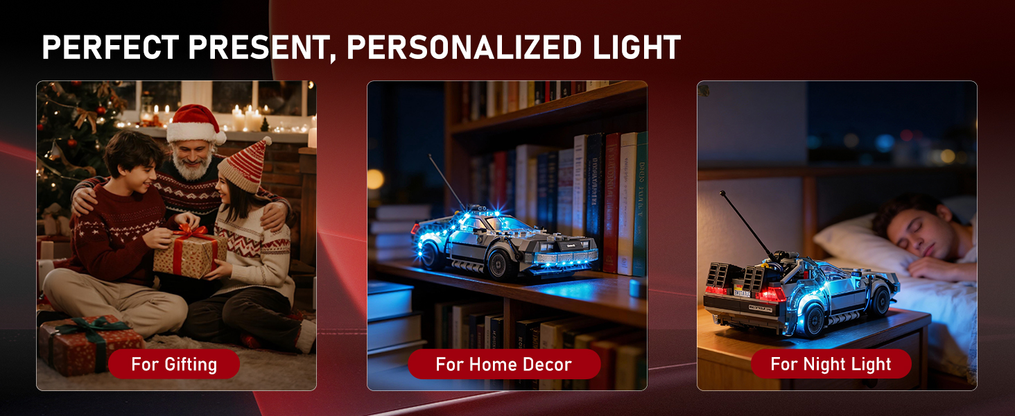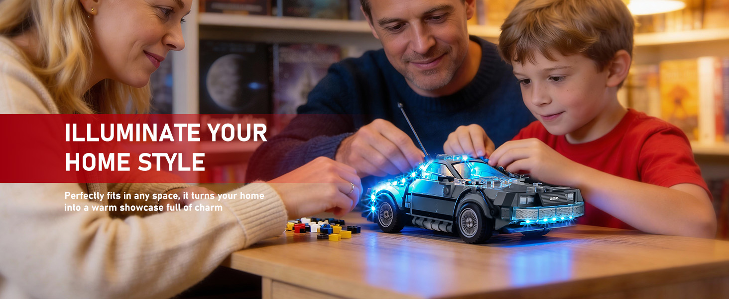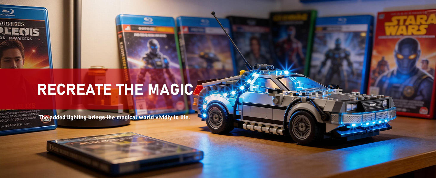 【Smarter Lighting, Cleaner Look】Say goodbye to harsh glare and messy wires! Our patented 2.0 enclosed light bricks provide soft, while specially designed cable-hider bricks keep your lego Time Machine from Back to the Future kit tidy and beautiful.