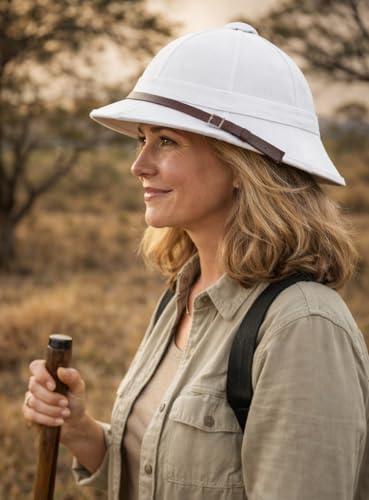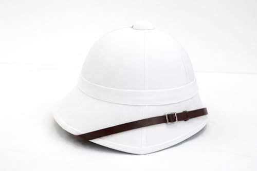 This British Army Pith Helmet is an authentic reproduction of the iconic tropical headwear worn during the colonial era, including the Zulu and Boer War campaigns. Available in both classic white and practical khaki colours, this safari helmet captures the distinctive style of Victorian and Edwardian military expeditions. The pith helmet features the characteristic high crown and wide brim design that provided essential sun protection for soldiers serving in hot climates across Africa and Asia. Constructed in the traditional style, this helmet represents a significant piece of military history and makes an excellent addition to historical collections, period reenactments, or theatrical productions. The lightweight construction and ventilated design reflect the original purpose of keeping wearers cool in tropical conditions. Whether you’re a military history enthusiast, a collector of colonial-era memorabilia, or participating in historical events, this reproduction pith helmet offers an authentic look that defined an era of British military history. The timeless safari style remains instantly recognisable and evocative of adventure and exploration.