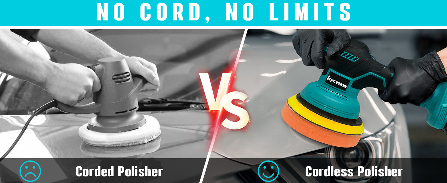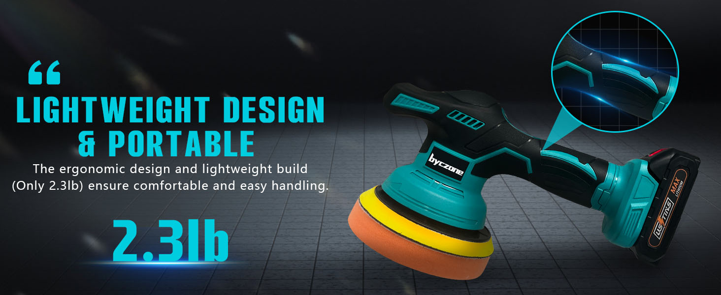 - 【ERGONOMIC DESIGN & LIGHTWEIGHT】— Experience perfect balance of power and comfort with the lightweight and ergonomic design of the byczone mini polisher. Weighing only 2.3 lbs, it's easy to carry and store. The ergonomic rubber handle of the wireless car polisher ensures a secure grip and allows for precise control; perfect for beginners, DIY enthusiasts, or professionals in the auto care industry