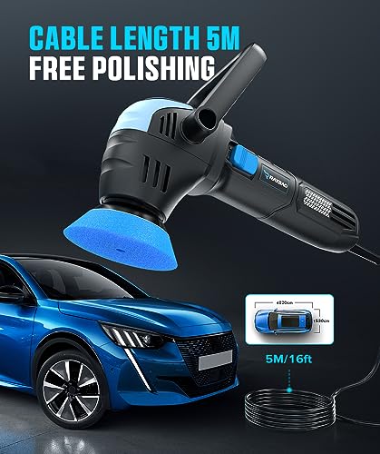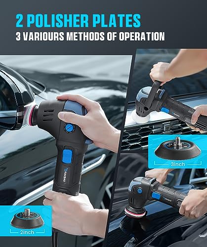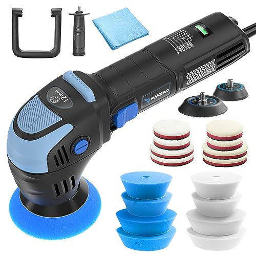 Car Polisher, 2inch/ 3inch Mini Polisher 750W with 12mm Random Orbital-Car Polishers and Buffers with 16pcs Trapezoidal Polisher Pads,16.4 ft Cord Heavy Duty Polishing Machine for Car Detailing Waxing