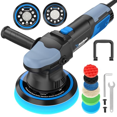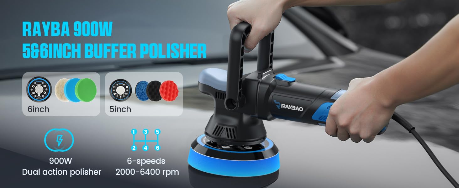 Car Polisher, 900W 5/6-inch Plates Dual Action Car Polisher, Random Orbital 9mm, 6 Variable Speeds 2000-6400 OPM, Car Buffer Polisher Machine for Car Detailing/Waxing/Polishing