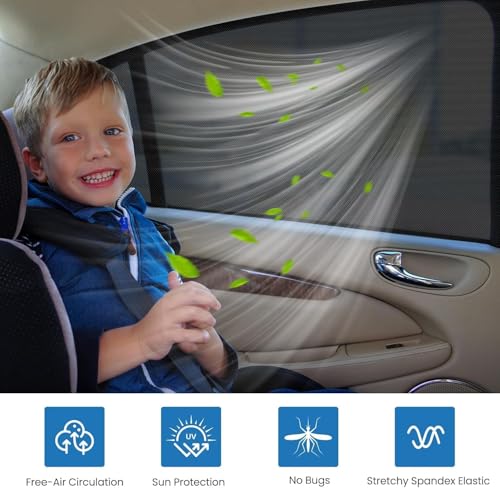 【Easy Installation】Highly stretchy nylon mesh, tear-resistant. You can easily pull open the car window screen and install them in just seconds. They are also very light, foldable, and storable in a pouch or your car as a backup when not in use