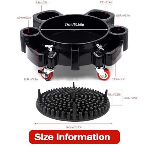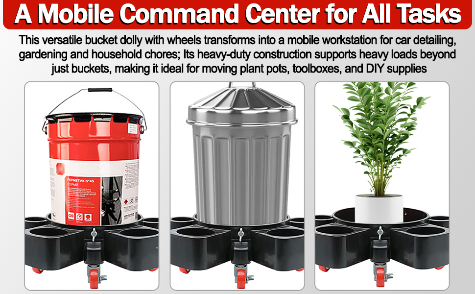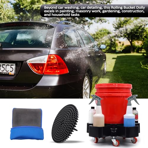 - Multi-Application: Beyond car washing, car detailing, this Rolling Bucket Dolly excels in painting, masonry work, and driveway sealing projects; Perfectly adapts to car washing, gardening, construction, and household tasks; The universal design accommodates 3.5 to 5 Gal 20L buckets, making it an indispensable tool for contractors, homeowners, and professional detailers alike
