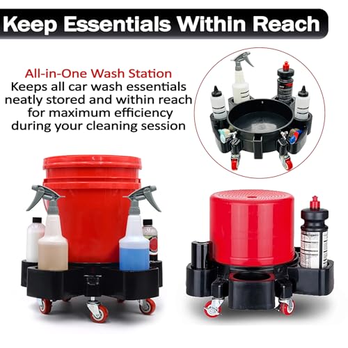 - Complete Car Wash System: This heavy-duty bucket dolly converts any 5-gallon bucket into a professional mobile detailing station, come with sediment filtration and organized tool placement for efficient wash sessions