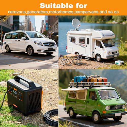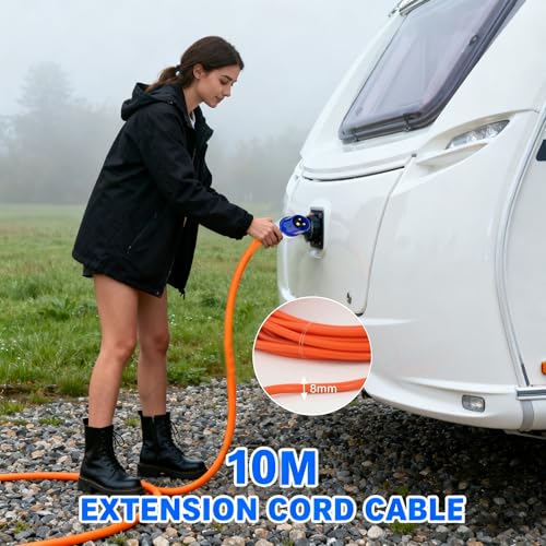 【Safe and Reliable】-Designed for peace of mind, this robust 10m extension lead is water resistant and ideal for both indoor and outdoor use. Safety comes first, and this 240V mains hook-up cable is approved for use on caravan sites, offering a dependable power supply for motorhomes and other recreational vehicles.