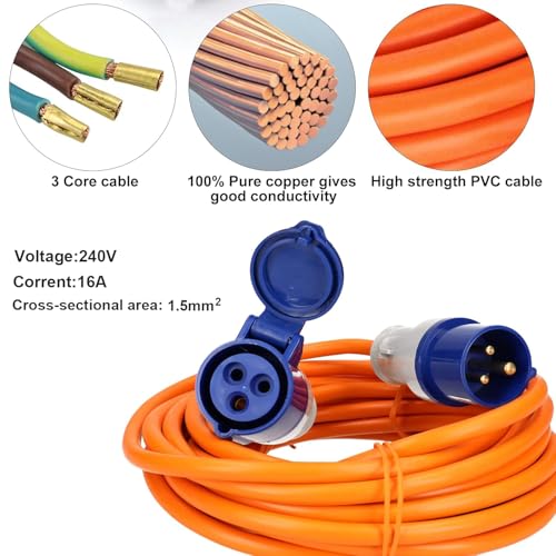 【Versatile】 – Rated at 16 amps, this hook-up cable is a must-have for any caravan or motorhome owner. Whether you’re touring the countryside or tackling jobs around the home, the bright orange finish ensures excellent visibility wherever it’s in use.