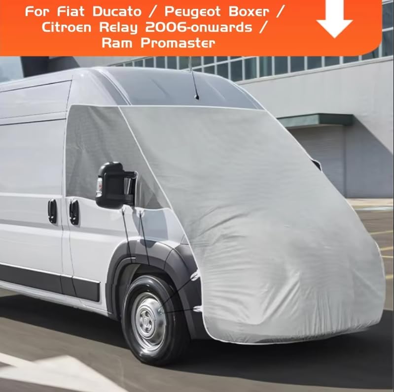 Caravan Motorhome Windscreen Engine Hood Full Cover, 600D Oxford Nonwoven Waterproof Windshield Frost Cover For Fiat Ducato Peugeot Boxer Citroen Relay 2006+ Ram Promaste