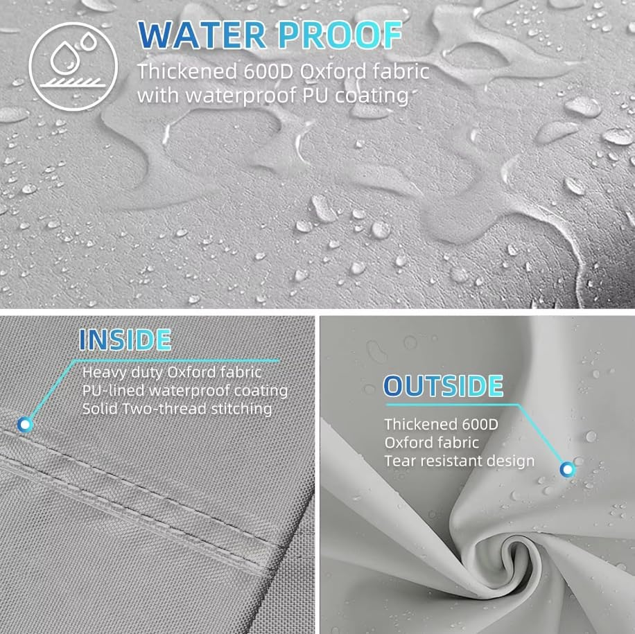 Material: 600D Oxford fabric Color: Gray Reflects UV rays and sunlight Insulates against cold, heat and drafts Protection against the elements, dust and dirt Ideal privacy protection Breathable, thanks to the pore structure, no more fogged-up windows