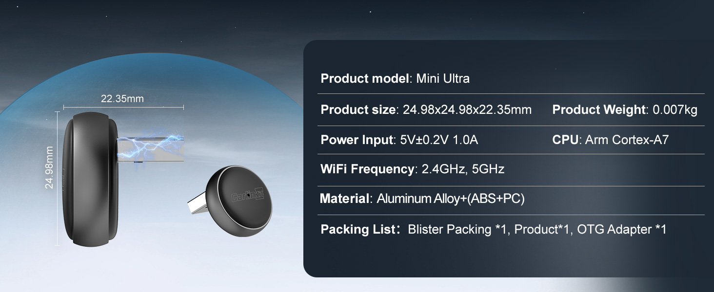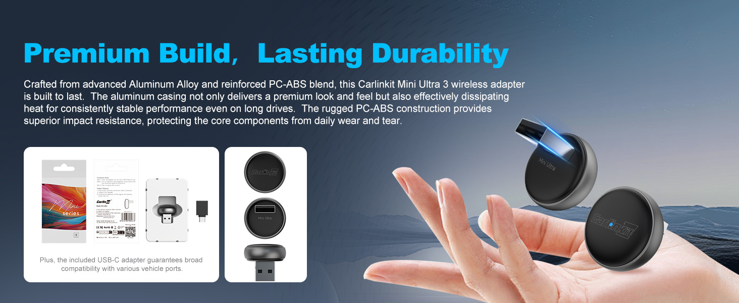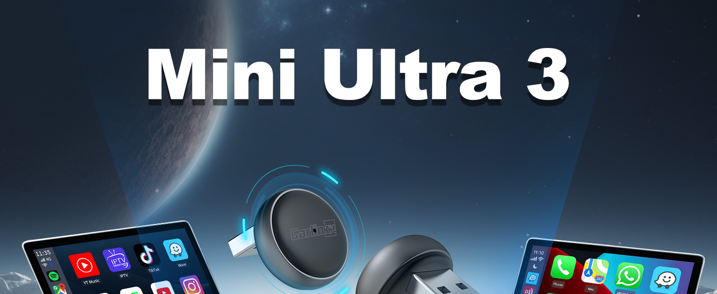Broad Smartphone Compatibility: The Carlinkit Mini Ultra3 wireless adapter is fully compatible with models running iOS 10+, and Android phones operating on Android 11.0 and higher, ensuring most users can experience wireless convenience