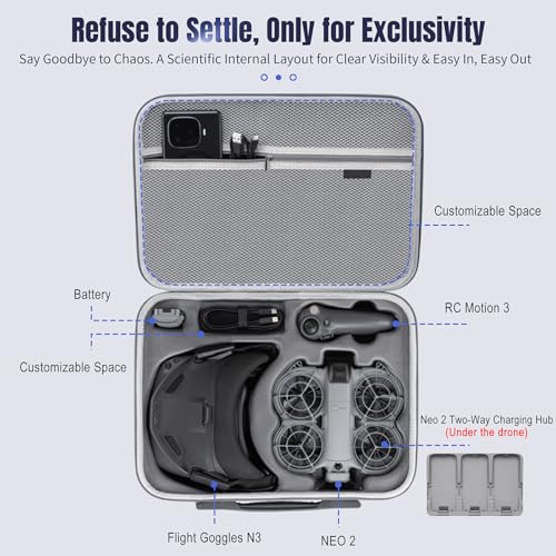 Carrying Case for DJI Neo 2 Motion Fly More Combo, PU Portable Travel Protection Storage Protective Bag Shoulder Bag Compatible with Glasses N3 and RC Motion 3 Remote Control, Charging Cable Drone Accessories
