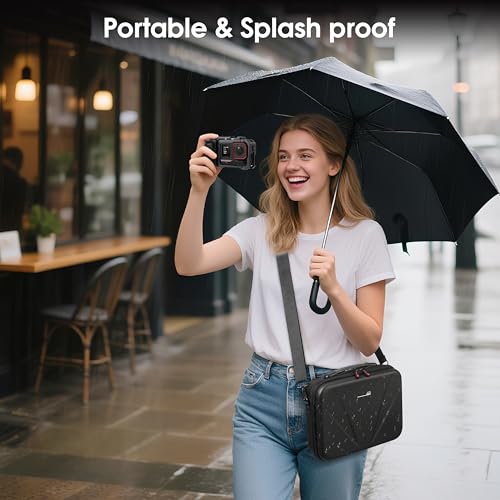 Strong Protection: Abrasion and Impact Proof PU Outer Shell. Internal Custom lycra Inserts.The Ace pro case for Insta360 is Anti-Impact, anti-scratch, plash proof and dustproof. Action Camera Cases can Protect for Insta 360 Ace Pro/ace pro 2 Camcorder in traveling.