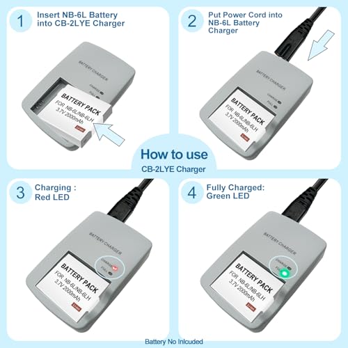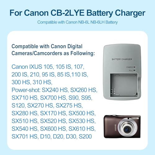- CB-2LYE Battery Charger compatible with NB-6L NB-6LH Battery for Canon IXUS 105, 105 IS, 107, 200 IS, 210, 95 IS, 85 IS,110 IS, 300 HS, 310 HS, compatible with Power-shot SX240 HS, SX260 HS, SX710 HS, SX700 HS, S90, S95, S120, SX270 HS, SX275 HS, SX280 HS, SX170 HS, SX500 HS, SX510 HS, SX520 HS, SX530 HS, SX540 HS, SX600 HS, SX610 HS, D10, D20, D30, S200,SX701 HS digital DSL/DSLR cameras / camcorders