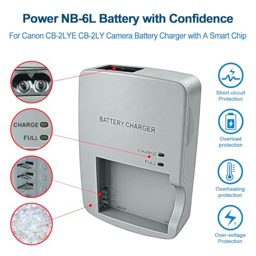- Smart-Chip Safety Protection – CB-2LYE Charger Auto-cutoff when fully charged prevents overheating and extends NB-6L NB-6LH battery life, safely charge overnight. High quality NB-6L charger, edekoy have strictly quality controlled to ensure safe and reliable operation for years to come during the production process. The internal intelligent circuitry protects the battery with multiple protections, include over-current/over-voltage/short-circuit/over-heat and overload protection