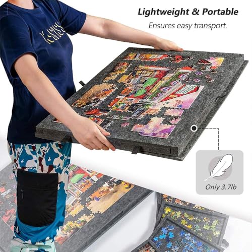 - Lightweight: The foldable puzzle board is lightweight, weighing only 3.7 lbs/1.67 kg. Its compact folding size makes it easy to store in a closet, bookshelf, or under the bed. It's also an ideal choice for carrying around creative entertainment while traveling, on vacation, or visiting friends