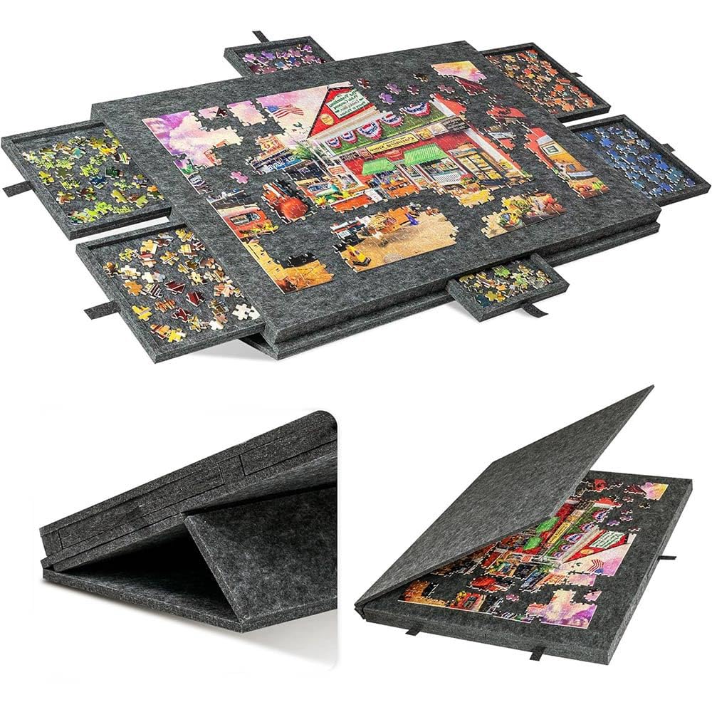 - Large capacity: Designed for large puzzle enthusiasts, the spacious jigsaw board can easily hold up to 1000 puzzle pieces, satisfying all kinds of puzzle challenges