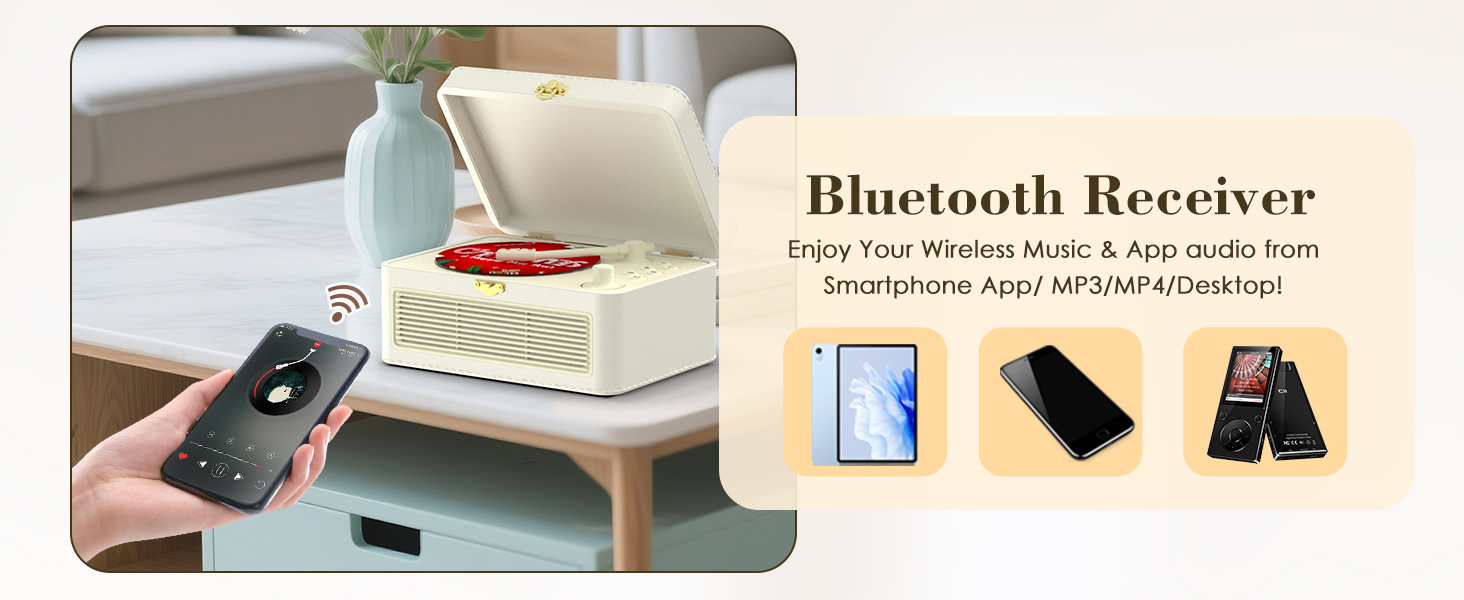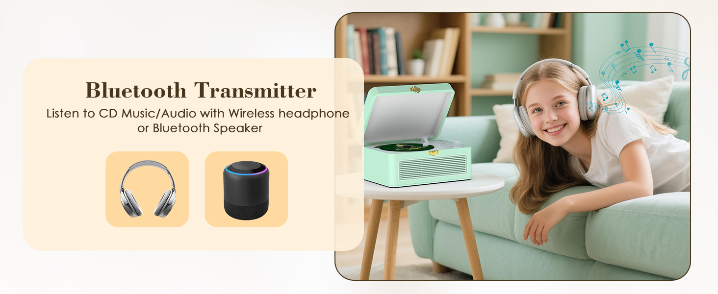 - CD Player with Bluetooth: This portable CD player has built-in Bluetooth transmitter and Bluetooth receiver, which not only connects to Bluetooth speakers and headphones, but also connects to Bluetooth signals from smartphone, laptop, tablet, and acts as a speaker to play wireless music. When connecting, if there are multiple Bluetooth receivers, the cd-player will be connected to the nearest and strongest Bluetooth device.