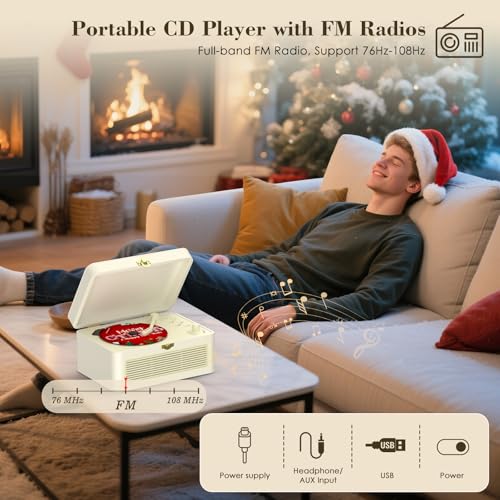 - CD Player with Speakers: The retro CD player is equipped with dual Hi fi stereo speakers, delivering an immersive audio experience. The CD-player produces clear, noise-free sound with stable, smooth playback. Whether you're listening to CDs, online music or radio stations, it provides seamless audio enjoyment, allowing you to embark on a wonderful musical journey at home.