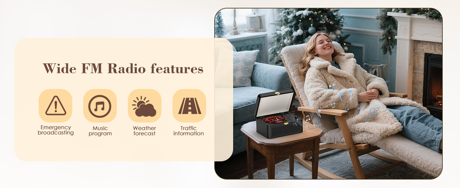 - Radio CD Player: Enjoy FM radio time and listen to all channels for weather information, news, traffic and music. The channel range is 76MHz-108.0MHz.The radio feature also includes an auto-scan function to quickly find available stations, and during the automatic channel search process, you can short press the play/pause button to stop automatic channel search and save the currently found channel as you want.