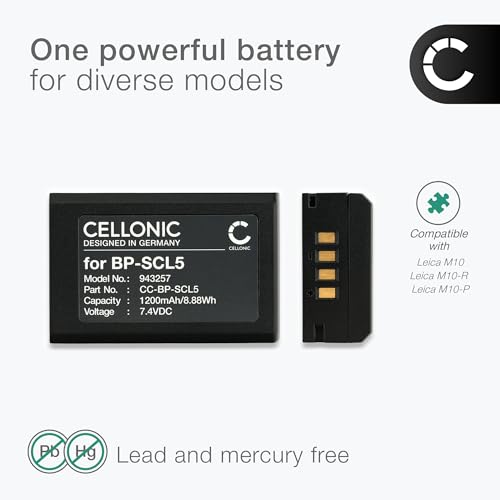 CELLONIC, Camera battery compatible with Leica M10 Monochrom, M10-R, M10-P (1200mAh, 7.4V)