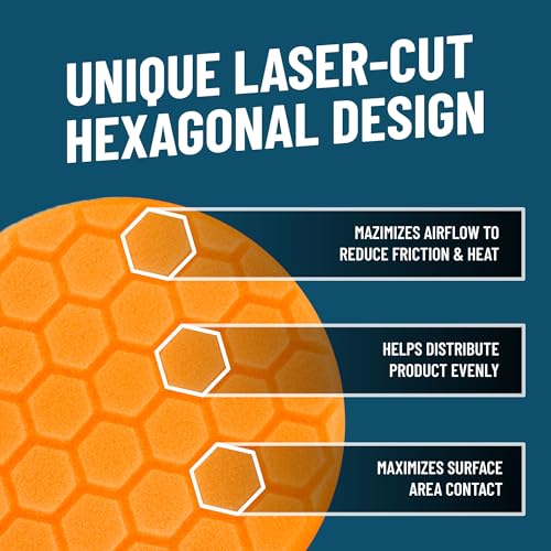 Chemical Guys Hex-Logic Medium Cut Polishing Pad Orange (4 Inch) (3 Pack) – Foam Correction Pads for Swirl Removal & Light Defect Restoratio