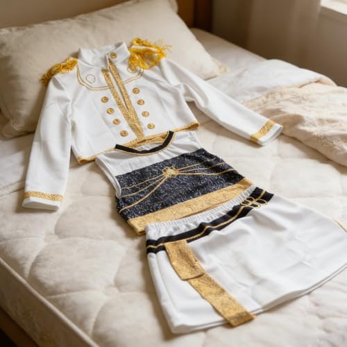 Set of 3 cosplay costumes: includes black printed vest x1, long sleeve white coat x1, white skirt x1.
