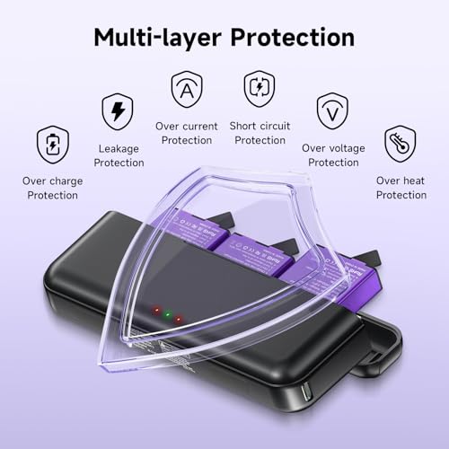 - 【Multiple protection for battery and charger】Certified by FCC, PSE, ROHS. Tested by the manufacturer to meet OEM standards (overcharge, short circuit, high temperature and overvoltage protection) with high quality, ensuring complete protection for you and your devices.