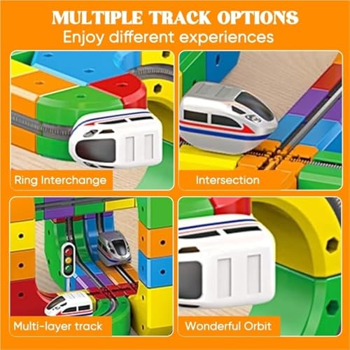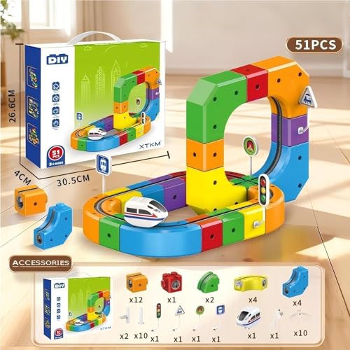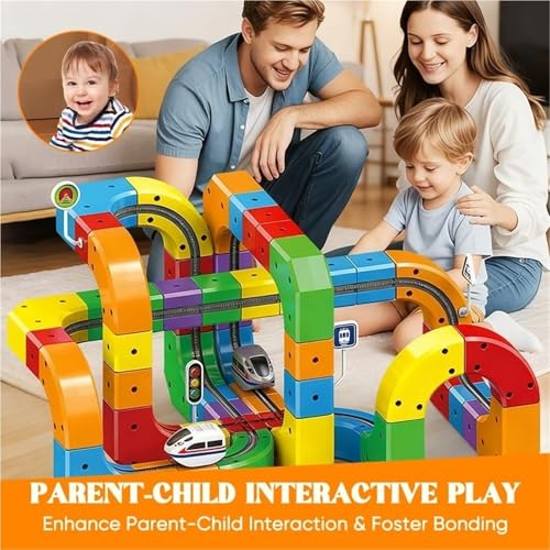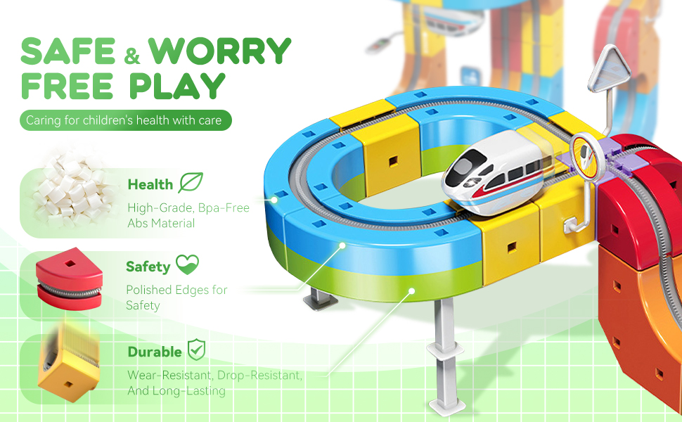 - 【Safe and Smooth Racing Experience】The magnetic blocks in this electric train set are made of high-quality materials with smooth, rounded edges, ensuring children's safety while playing. Each magnetic block locks securely, forming a stable magnetic track to prevent slipping or falling during play. Parents can rest assured that their children can use this toy with peace of mind, enjoying the thrill of high-speed train racing on the magnetic monorail track and experiencing a series of exhilarating racing adventures