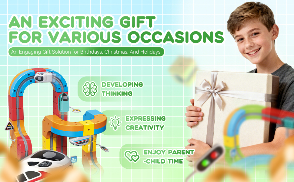 - 【The Perfect Gift for Little Architects】 This modular electric train set is the ideal gift for creative children aged 4-8! The set includes a high-performance electric train that runs smoothly on both magnetic monorail and magnetic tracks. It not only supports building and racing but also allows children to learn basic engineering principles and physics through track design. Whether for birthdays, holidays, or other special occasions, this multi-functional electric train set is a memorable gift for children who love building, exploring, and creating