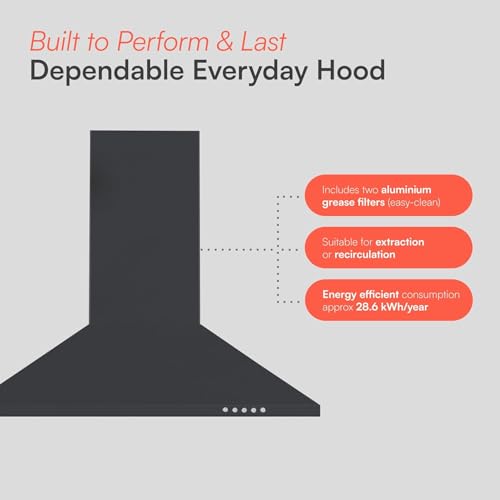 - EASY MAINTENANCE: The hood includes two easy-to-clean aluminium grease filters that trap airborne grease and cooking residue. These can be conveniently removed and washed, keeping your extractor working efficiently and maintaining a cleaner kitchen space. It also comes equipped with CF100 carbon filters, so you can recirculate without fear of any lingering odour.