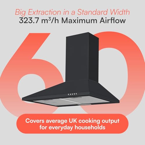 - SLEEK, MODERN DESIGN: Available in both Black and Stainless Steel, this 60cm hood delivers a professional look that complements any kitchen décor. Its clean lines and compact profile make it ideal for both contemporary and traditional kitchens, while durable materials ensure long-lasting performance.