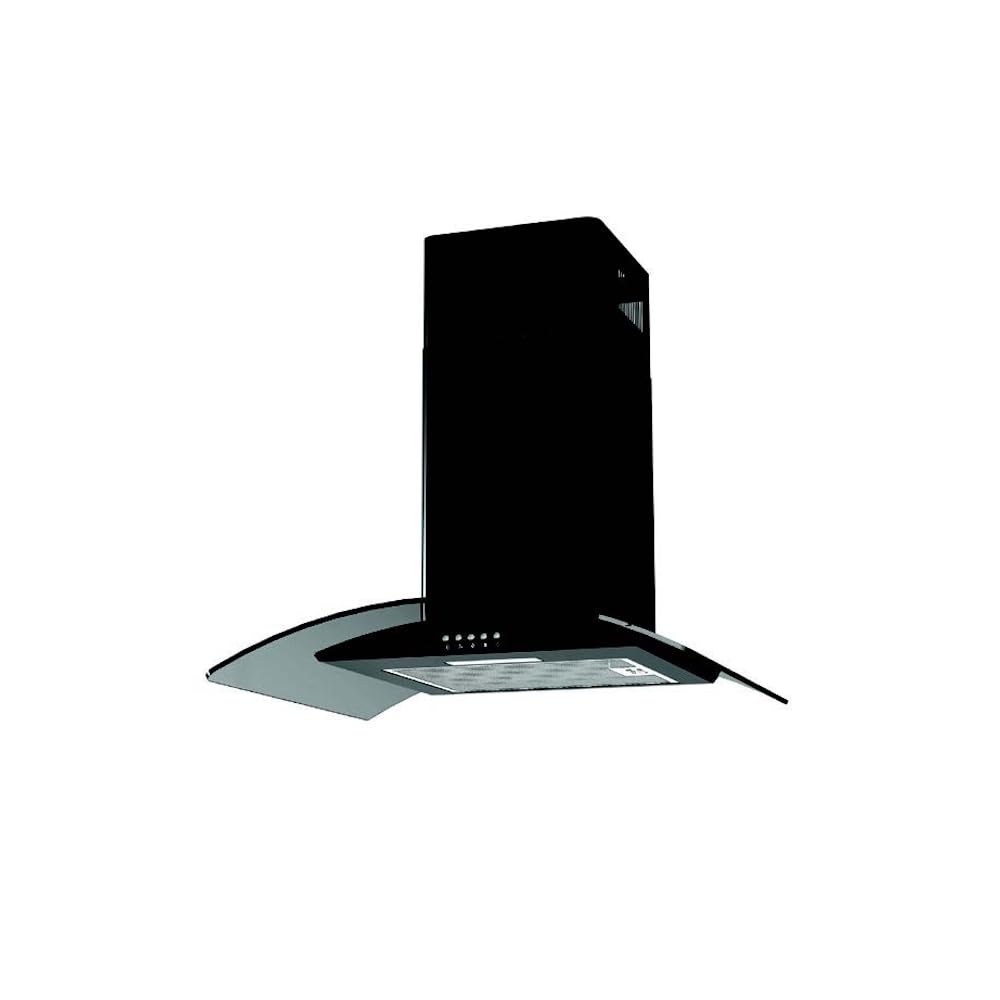 CURVED GLASS COOKER HOOD IN BLACK – This 60cm curved glass chimney hood provides practical extraction with a sleek modern look. Designed for wall-mounted installation above hobs and cooktops, it helps reduce steam and odours while supporting everyday kitchen ventilation.