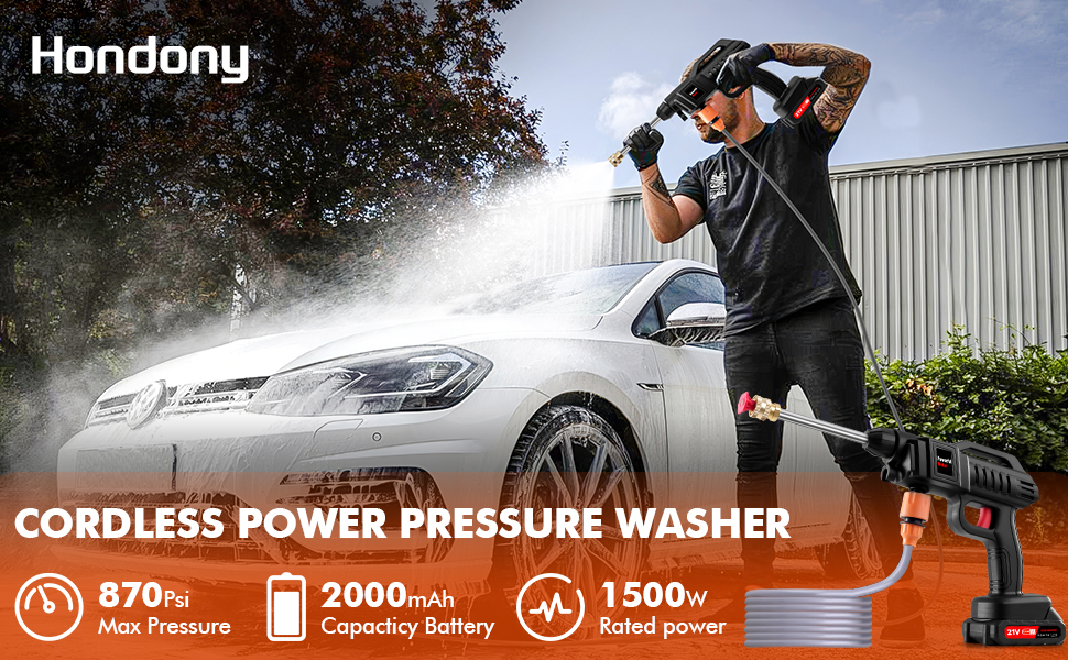 Cordless 21V High Pressure Washer Gun, 1500W Handheld Power