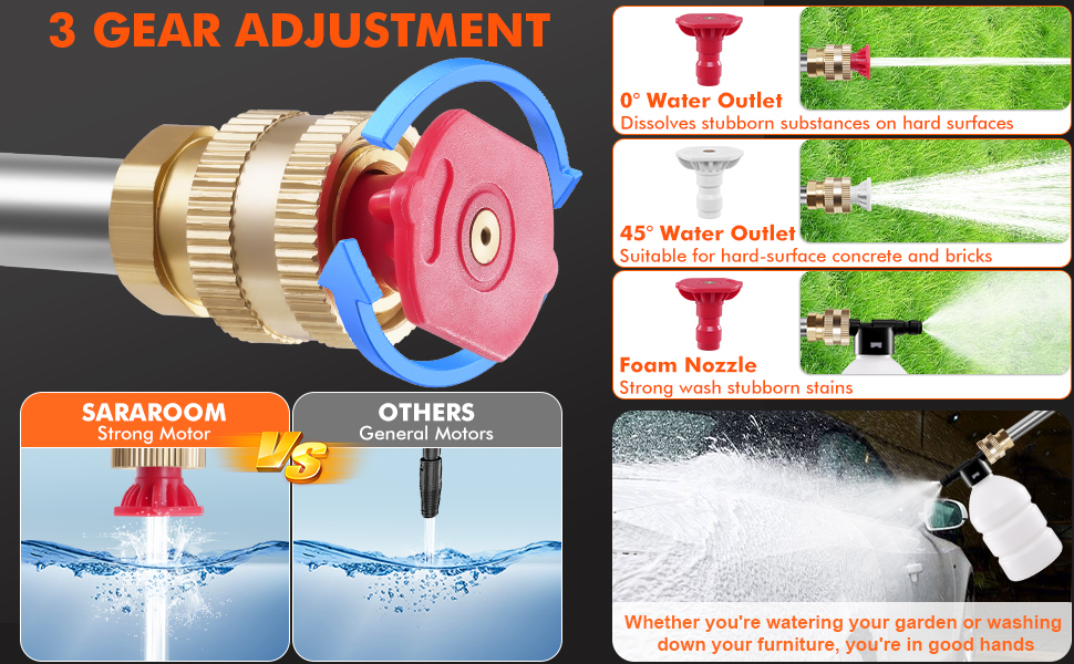 [Versatile Cleaning for Home & Outdoor Use] Go beyond car washing. This pressure washer is your all-in-one solution for cleaning patios, garden furniture, bicycles, gutters, and even safely rinsing pets. It also doubles as a convenient tool for gentle plant watering.