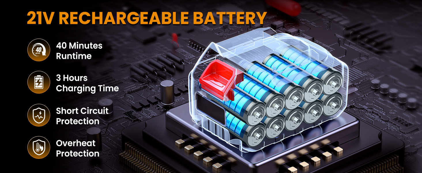 【2x 3.0Ah High-Capacity Batteries & 80 Mins Runtime】Say goodbye to frequent charging anxiety. This battery pressure washer kit includes two 3.0Ah lithium-ion batteries, each providing up to 40 minutes of continuous runtime (totaling 80 minutes). The long-lasting power ensures you can wash two cars or clean your entire patio on a single trip. The cordless design eliminates tangled cables, offering true freedom for outdoor cleaning anywhere.