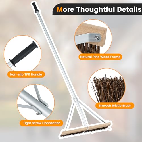 - 【More Thoughtful Details】 This roof cleaning tool features a non-slip TPR handle to keep your grip steady. Tight screw connection and 2 support beams form a stable triangular structure between the natural pine wood head and the rod, enhancing its durability.