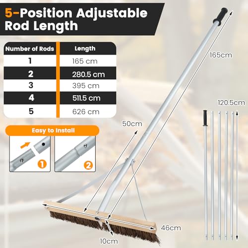 COSTWAY Leaf Roof Brush, 21FT/626cm Adjustable Length Roof Cleaning Tool with 5 Aluminum Extension Poles & High-Strength Rigid Brush, Lightweight Roof Rake for Removing Leaves, Pine Needles, Pine Cone