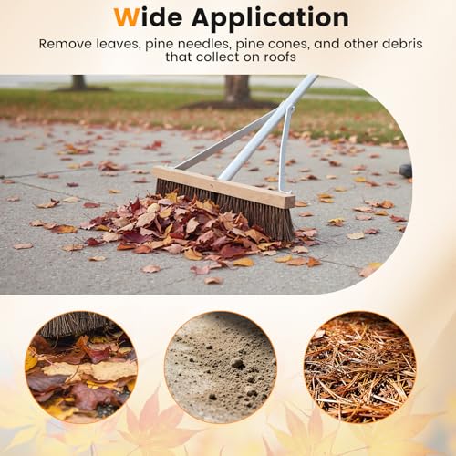 - 【Wide Application】 Fitted with smooth, dense bristles, this handy roof brush removes leaves, pine needles, pine cones, twigs, dirt, and other debris that collect on roofs. It’s an ideal cleaning tool for both residential and garden shed rooftops.